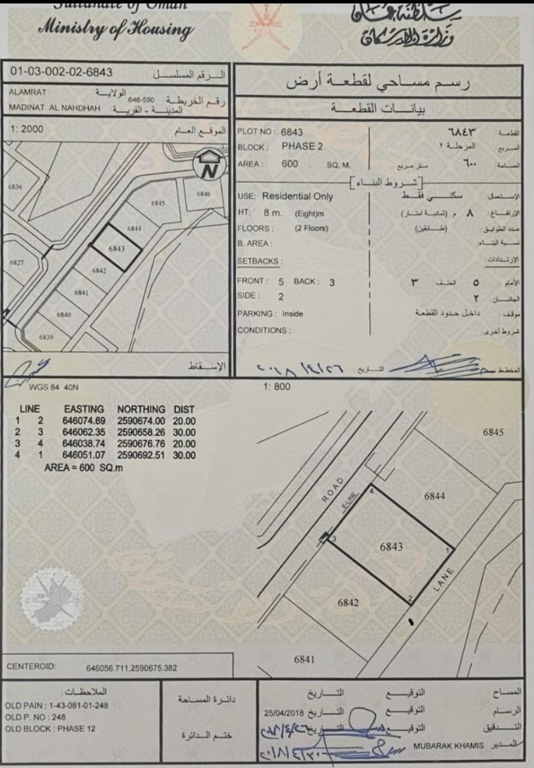 انا المالك ارض سكنية في العامرات مدينة النهضة/مربع12