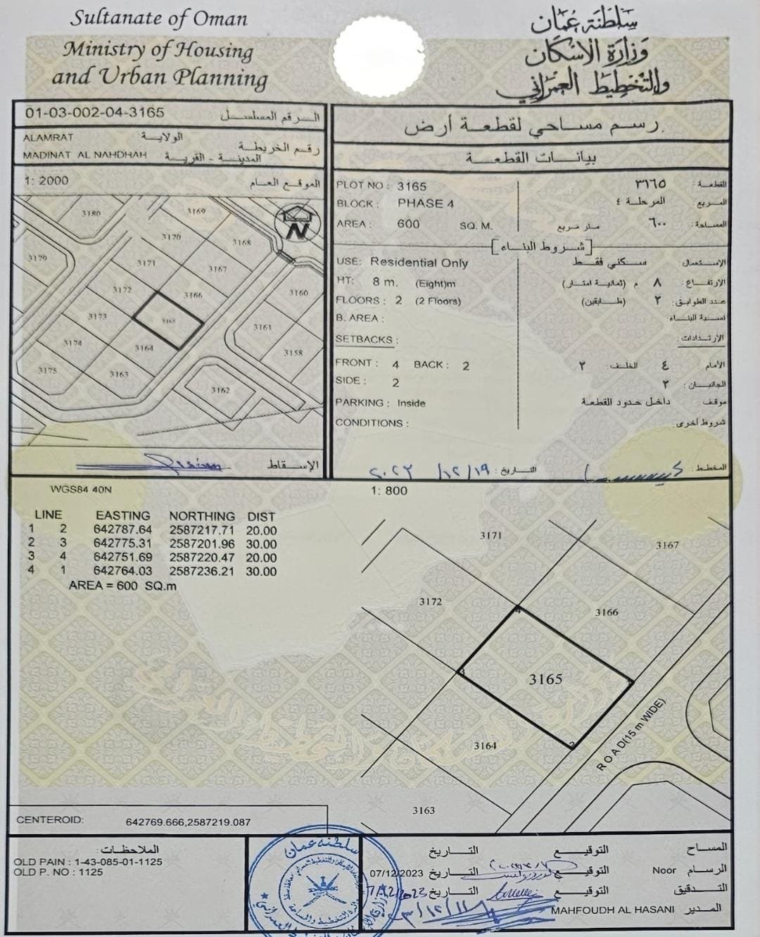 رقم الارض3165المساحة600متر²