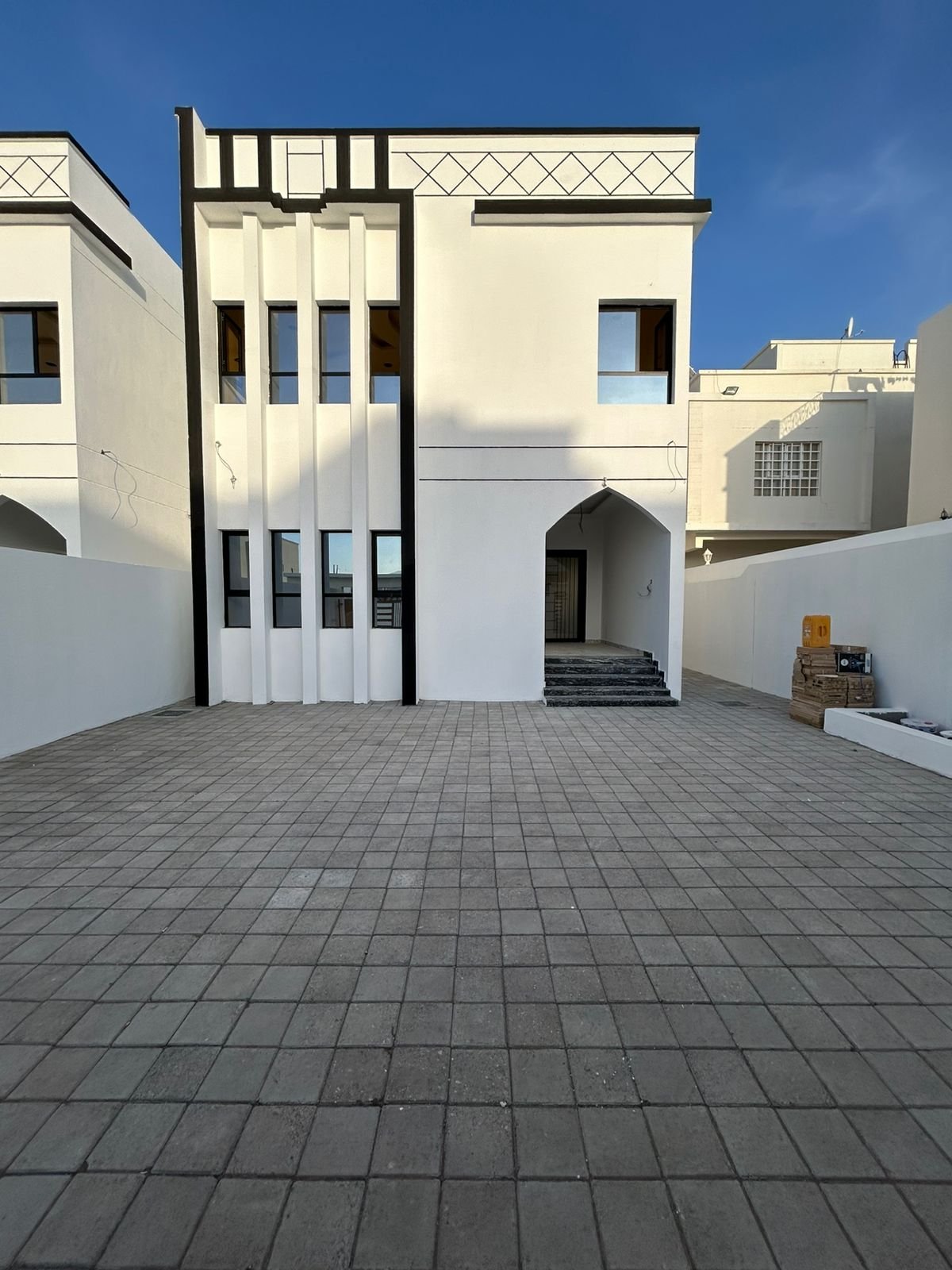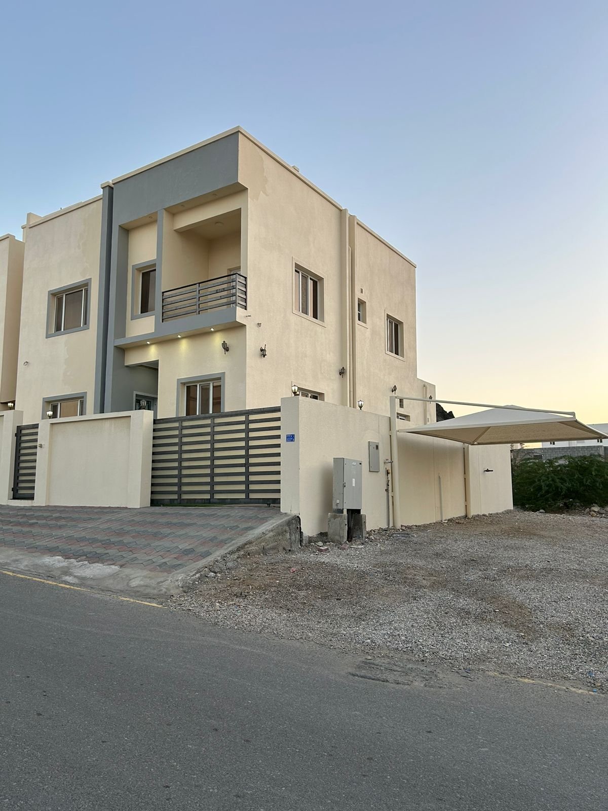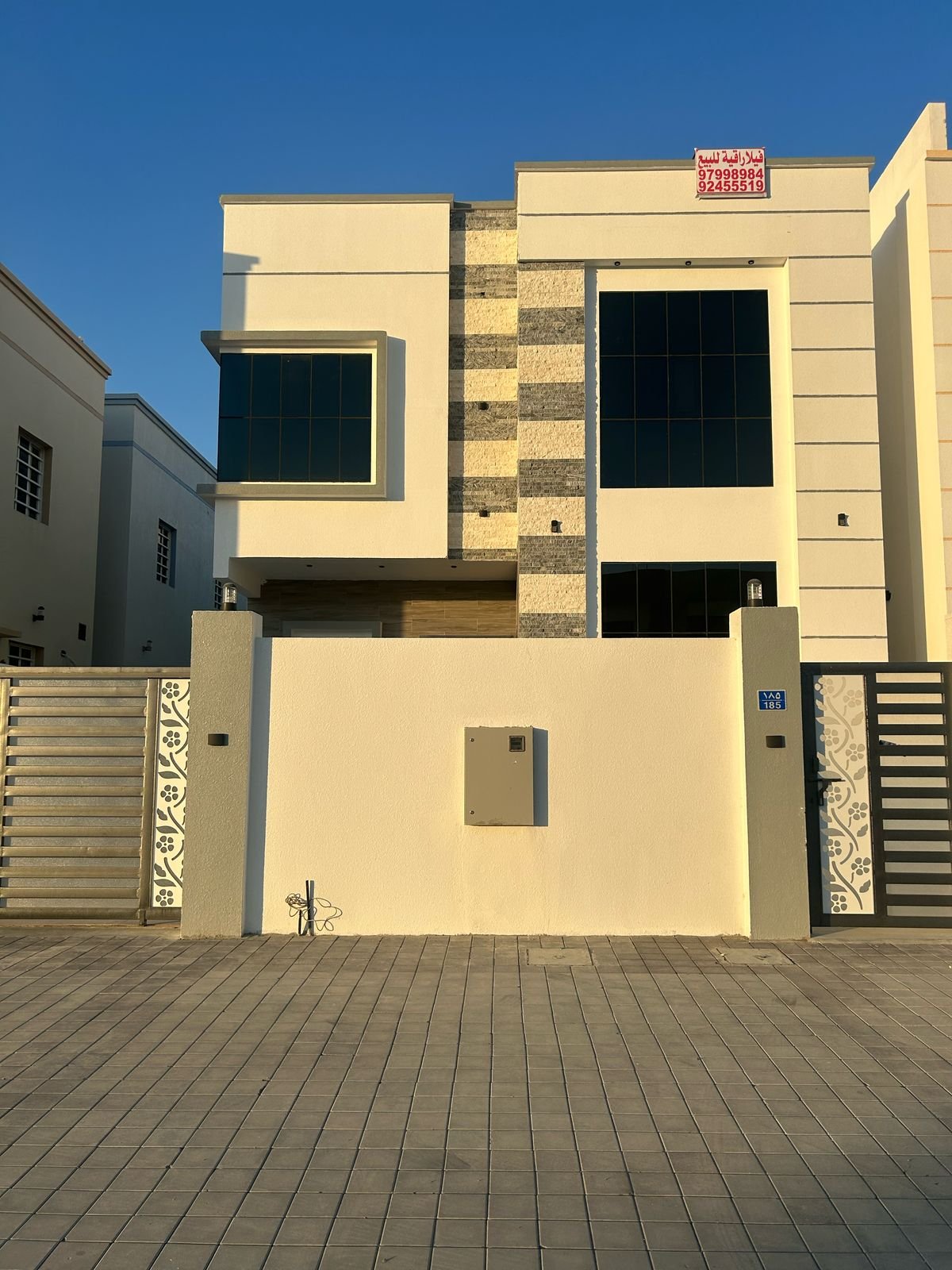 فرصة مميزة لامتلاك توين فيلا بتشطيبات فاخرة وموقع استراتيجي في منطقة العوابي - بوشر، بالقرب من الحديقة والجامع، مع توفر عدد كبير من مواقف السيارات أمام العقار.