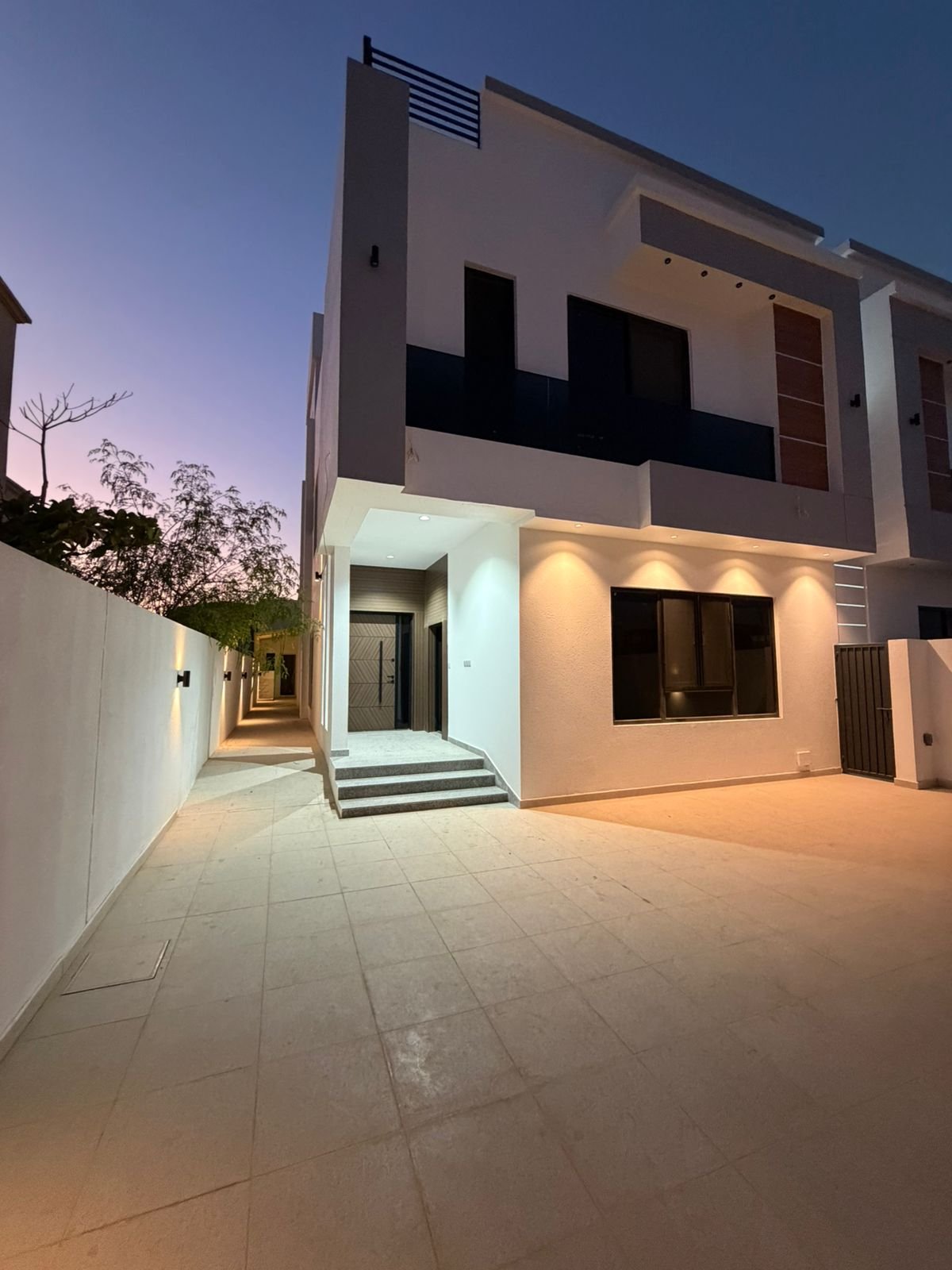 فرصة مميزة لامتلاك توين فيلا بتشطيبات فاخرة وموقع استراتيجي في منطقة العوابي - بوشر، بالقرب من الحديقة والجامع، مع توفر عدد كبير من مواقف السيارات أمام العقار.